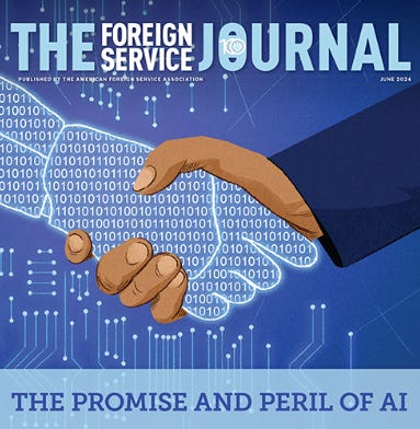 Some of you may know that I serve on the editorial board of the Foreign Service Journal. With a print and online circulation of 18,000, the century-old FSJ is the flagship magazine for diplomats, one that offers a unique and vital voice on American foreign policy. (I love working with prospective authors, so please reach out if you have an idea for a submission.)